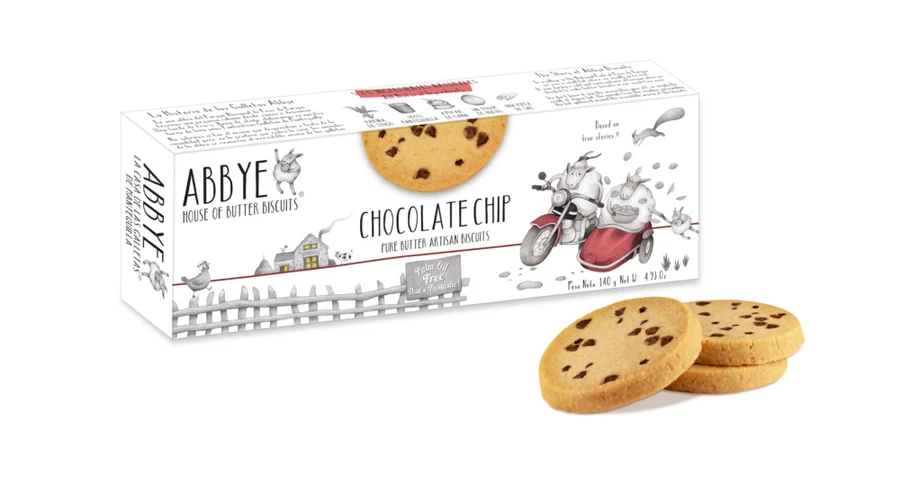 ABBYE adalékmentes, csokoládécseppekkel gazdagított ízletes vajas keksz.