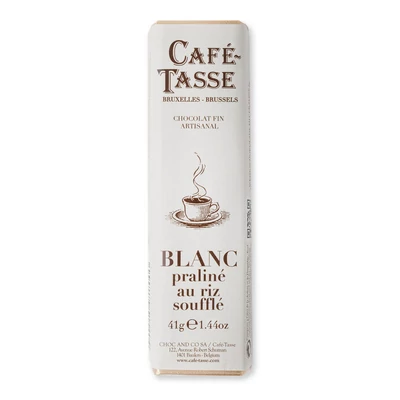 Ha a krémes, édes ízek kedvelője, ez a szelet Öné! A Café Tasse tökéletesen lágy, belga fehér csokoládéját finomra olvasztottuk, majd gazdagon dúsítottuk ropogós puffasztott rizzsel.