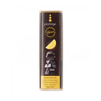 Hozzáadott cukor nélkül készült, sztíviával édesített étcsokoládé narancsos ganache krémmel töltve.